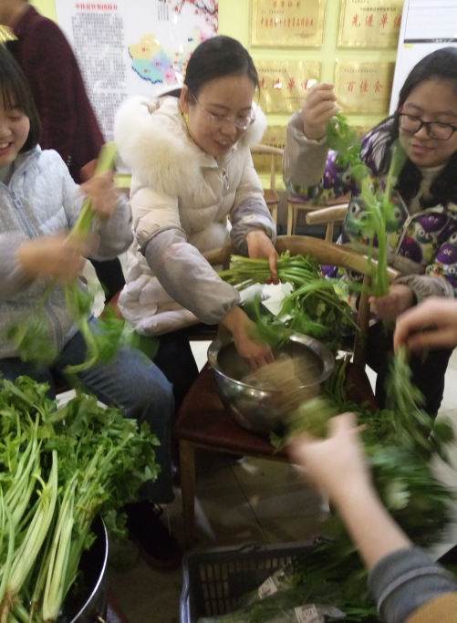 上午,同学们准时集合购买食材,从食材的种类再到色泽,大家无一不积极发表自己的看法,在层层筛选后满载而归。接着就是摘菜和洗菜,同时给食堂现场的比赛场地进行装饰和准备,大家各自分工,不亦乐乎。