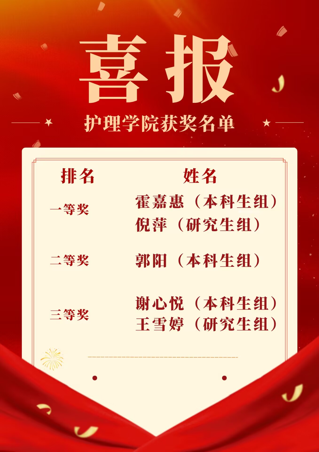 根据专业评委的现场打分,银河 5名参赛选手全员获奖,其中,霍嘉惠(本科生组)、倪萍(研究生组)获一等奖,郭阳(本科生组)获二等奖,谢心悦(本科生组)、王雪婷(研究生组)获三等奖。