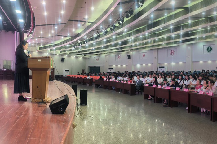 洪静芳为新生作了题为《惟健康承载幸福,以奋斗成就未来》的入学教育报告。她以“何为守护”这一问题切入,引发学生们思考,并围绕护理学等专业的专业价值、人生价值、社会需求,以及银河 声誉、教学资源、科学研究、合作交流等,对同学们进行专业思想教育。她鼓励新生们在未来的学习和生活中要树立目标、强身健体、心怀感恩、承担责任,为实现护理事业的发展作出贡献。