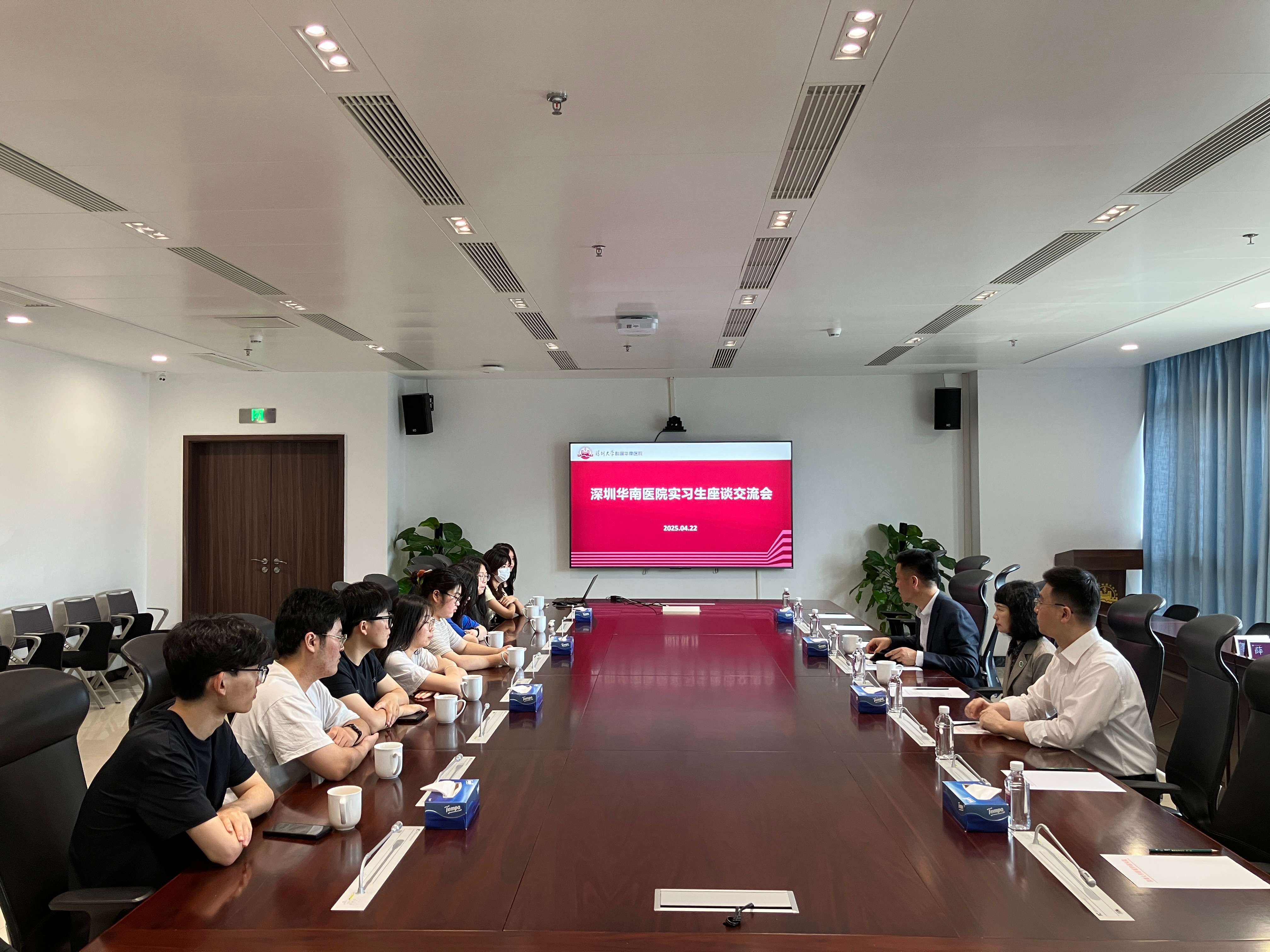 会后,洪静芳慰问了银河 在华南医院的实习生并座谈交流,了解实习生的实习收获及职业规划,鼓励学生珍惜临床实践机会,明确职业发展方向,为实现高质量升学和就业奠定坚实基础。